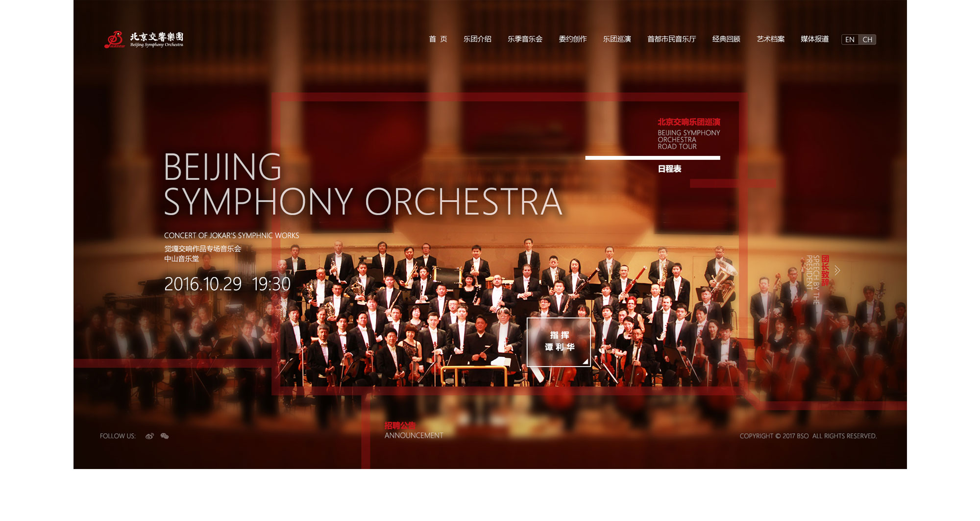 北京交響樂(lè )團是中國著(zhù)名交響樂(lè )團之一,成立于1977年10月,我國著(zhù)名指揮家譚利華先生現任樂(lè )團音樂(lè )總監、首席指揮。長(cháng)期擔任樂(lè )團藝術(shù)指導的老一輩指揮大師李德倫先生和黃飛立先生為樂(lè )團的發(fā)展做出了極大的貢獻樂(lè )團以其深厚的音樂(lè )修養、嚴謹的技藝、豐富廣泛的曲目,成為我國最受歡迎的大型音樂(lè )團體之一